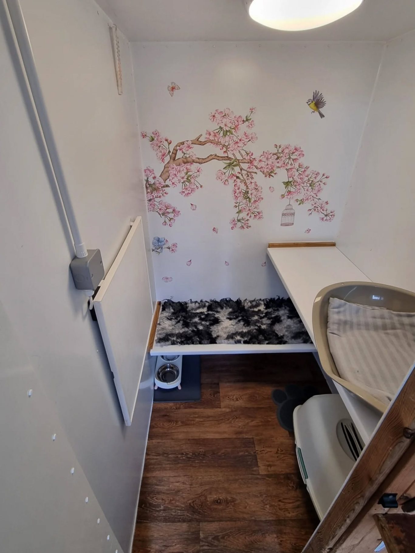 The sleeping areas are fully enclosed with thermostatically temperature-controlled heaters. Each bedroom is full height and includes multiple shelving levels, allowing your cat to choose where they feel most relaxed. The generously sized exercise area provides plenty of space to stretch, explore and unwind, and all chalets open onto a secure safety corridor for added peace of mind.